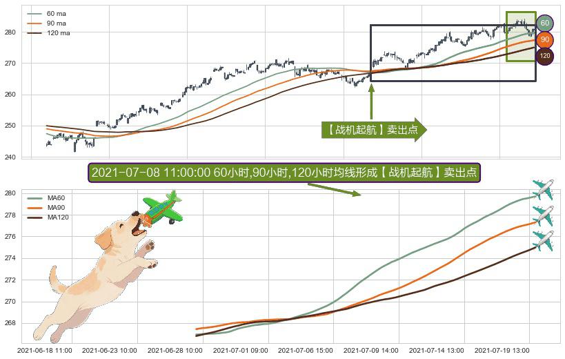 ⚀ 2021-06-25 15:00:00小时-2021-07-19 15:00:00小时显现 60小时-90小时-120小时均线 【战机起航】卖出点 看空信号,后市看跌,卖出