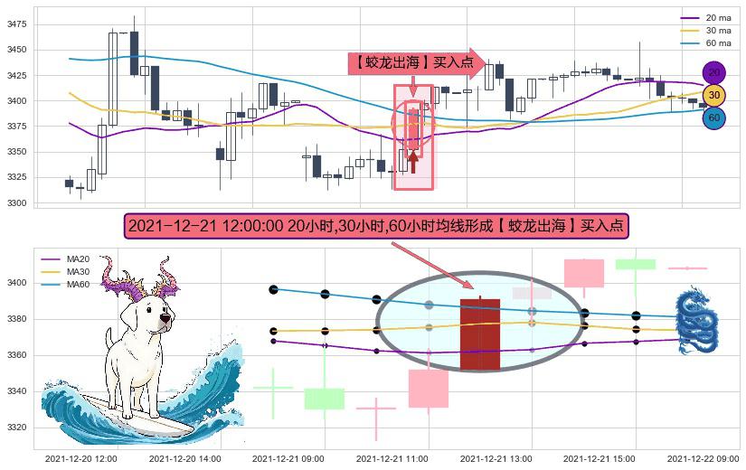 ⚀ 2021-12-21 12:00:00小时显现 20小时-30小时-60小时均线 【蛟龙出海】买入点 看多信号,后市看涨,买入