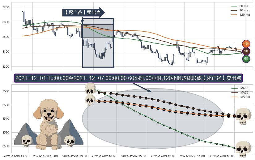 ⚀ 2021-12-01 16:00:00-小时至2021-12-07 09:00:00-小时显现 60小时-90小时-120小时均线 【死亡谷】卖出点 看空信号,后市看跌,卖出