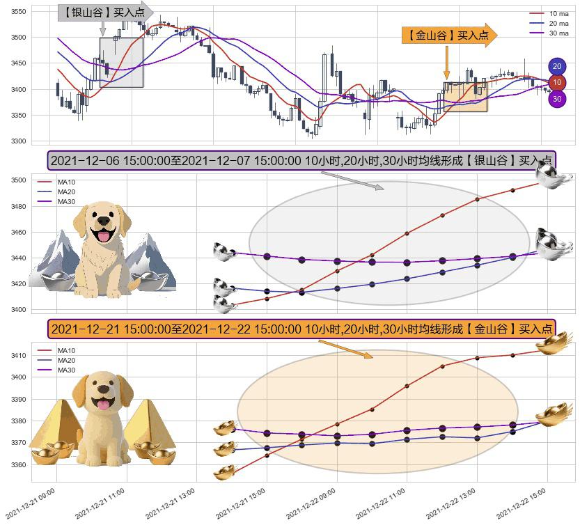 ⚀ 2021-12-21 16:00:00-小时至2021-12-22 15:00:00-小时显现 10小时-20小时-30小时均线 【金山谷】买入点 其再次确认了买入信号,可靠性更强,买入