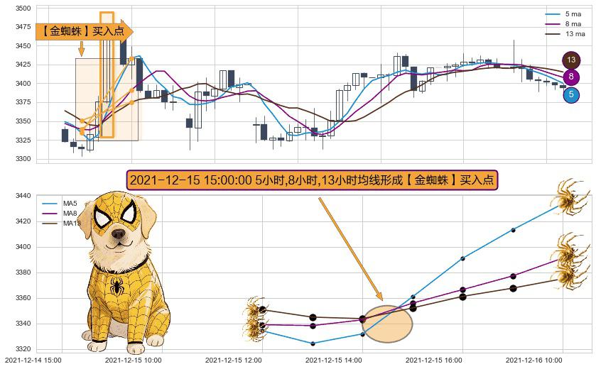 ⚀ 2021-12-15 15:00:00小时显现 5小时-8小时-13小时均线 【金蜘蛛】买入点 看多信号,后市看涨,买入