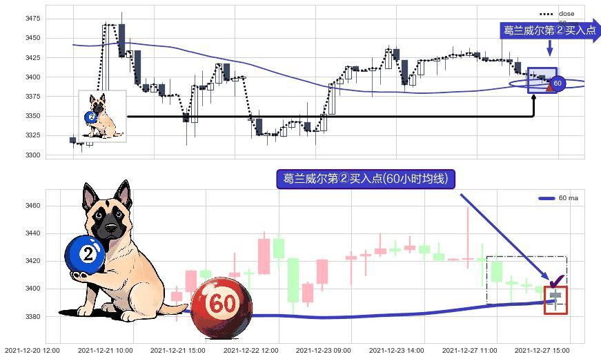 ⚀ 2021-12-27 15:00:00-小时显现 葛兰威尔均线 60小时均线 第②买入点 上升趋势的中继信号,后市看涨,买进信号