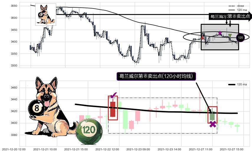 ⚀ 2021-12-27 11:00:00-小时显现 葛兰威尔均线 120小时均线 第⑧卖出点 下降趋势的中继信号,后市看跌,卖出信号