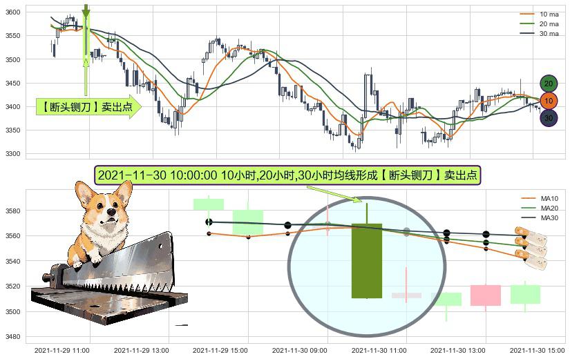 ⚀ 2021-11-30 10:00:00小时显现 10小时-20小时-30小时均线 【断头铡刀】卖出点 看空信号,后市看跌,卖出