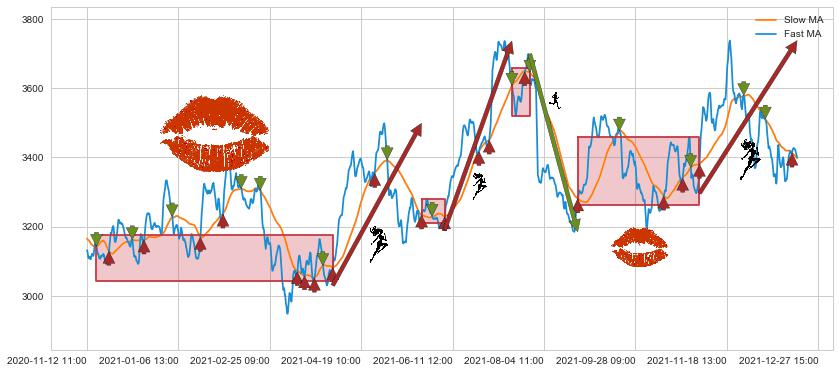 ⚂ 【死亡谷】卖出点长时间对 牛 市转 熊 市进行确认,且均线压制价格走势,但信号发出时间较长,属于【迟滞】看空卖出信号