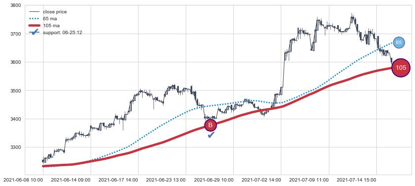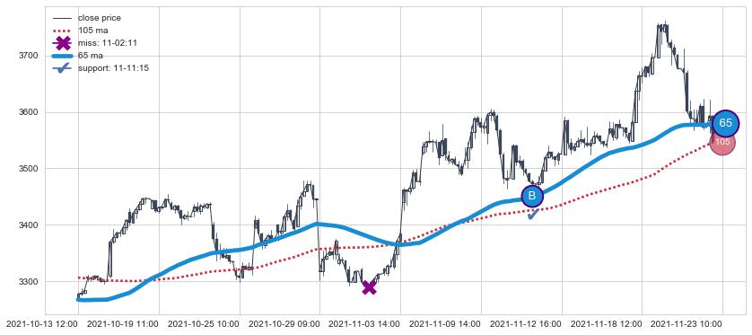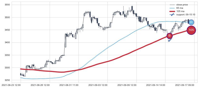 ⚄ 价格在均线获取支撑后再次向上反弹了【极短】距离, 第②买入点 支撑效果【等待验证】