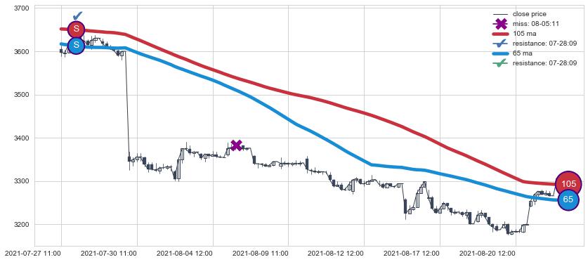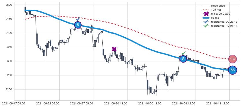 ⚄ 均线向上突破后价格上探力度低,正乖离率低,再次向下破位后维持原均线下跌趋势【强】