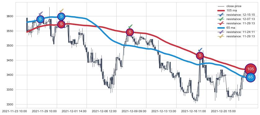 ⚂ 2021-12-22 11:00:00-小时均线向上突破,2021-12-27 11:00:00-小时重新下穿均线破位,均线阻力再次生效