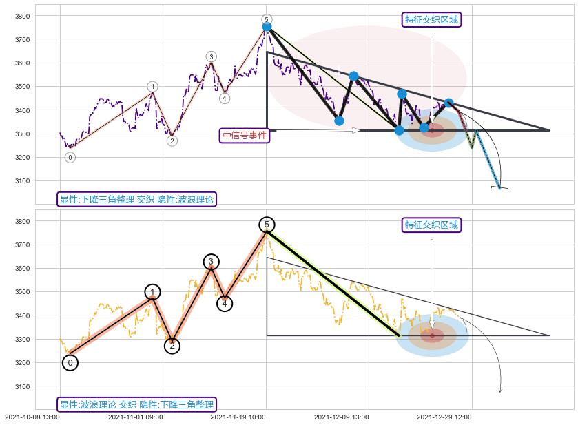 ➣ 【未确认突破,预测即将形成突破】下降三角形整理起点:11-19:11, 预测突破点:12-28:14,形态共194交易小时