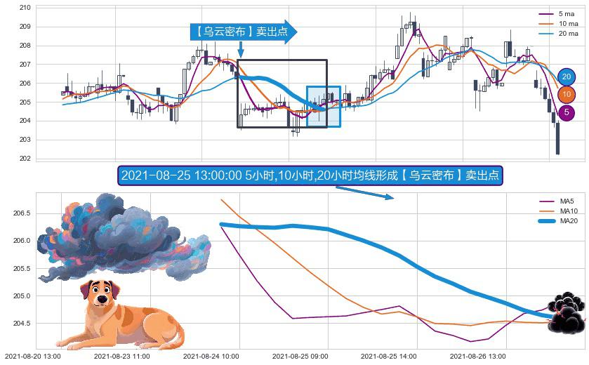 ⚀ 2021-08-24 09:00:00小时-2021-08-27 10:00:00小时显现 5小时-10小时-20小时均线 【乌云密布】卖出点 看空信号,后市看跌,卖出