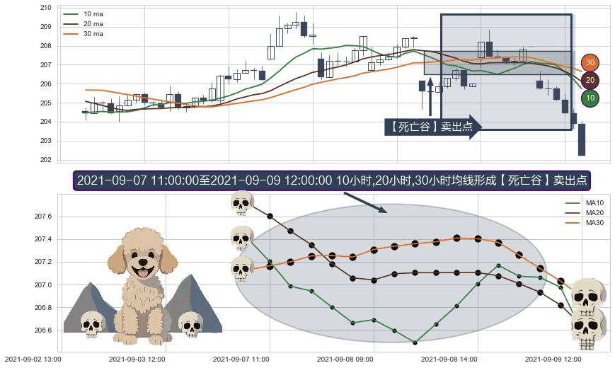 ⚀ 2021-09-07 12:00:00-小时至2021-09-09 12:00:00-小时显现 10小时-20小时-30小时均线 【死亡谷】卖出点 看空信号,后市看跌,卖出