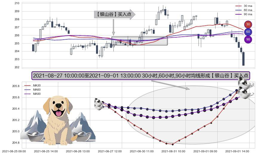 ⚀ 2021-08-27 11:00:00-小时至2021-09-01 13:00:00-小时显现 30小时-60小时-90小时均线 【银山谷】买入点 看多信号,后市看涨,买入