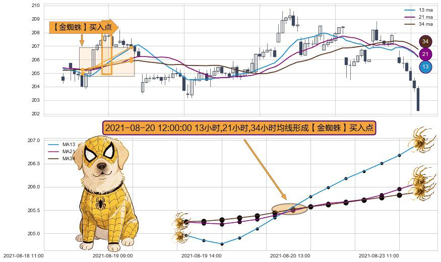 ⚀ 2021-08-20 12:00:00小时显现 13小时-21小时-34小时均线 【金蜘蛛】买入点 看多信号,后市看涨,买入