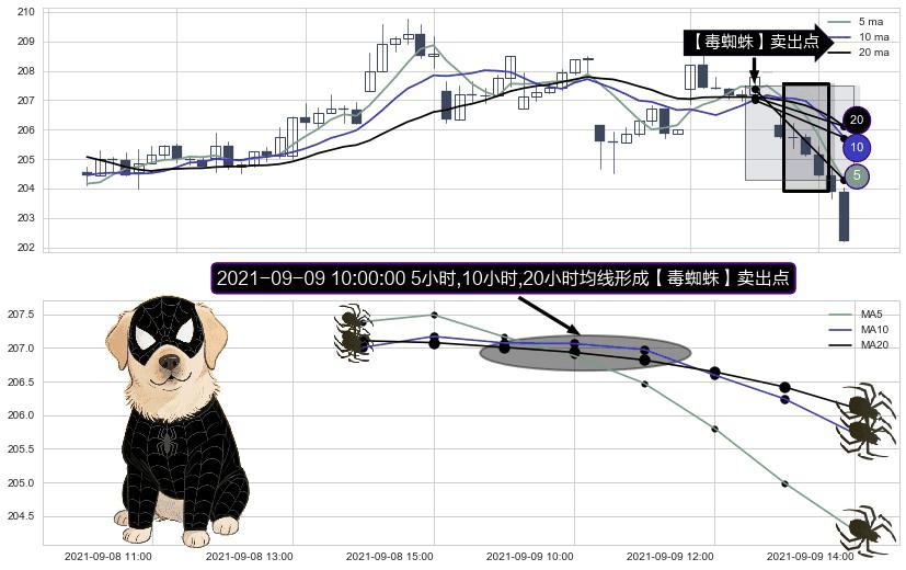 ⚀ 2021-09-09 10:00:00小时显现 5小时-10小时-20小时均线 【毒蜘蛛】卖出点 看空信号,后市看跌,卖出