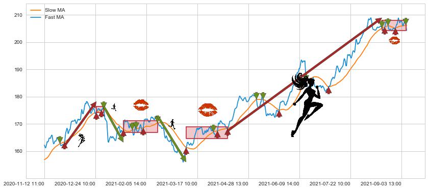 03-09 09:00至04-12 12:00 慢线与快线多次接触,存在上下穿越,有缠绕