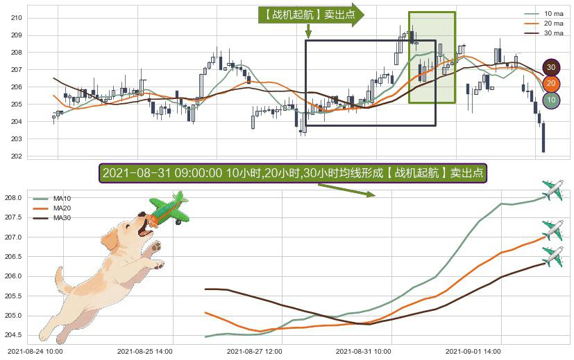 ⚀ 2021-08-26 11:00:00小时-2021-09-02 12:00:00小时显现 10小时-20小时-30小时均线 【战机起航】卖出点 看空信号,后市看跌,卖出