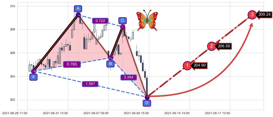 ➣ 已完成【蝴蝶】形态起点X: 08-26:14, 终点D: 09-09:14, 共57交易小时