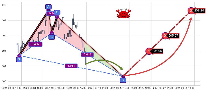➣ 未完成【螃蟹】形态起点X: 08-26:09, 已到达C点: 09-02:14, 预测最终D点: 09-16:14, 共97交易小时