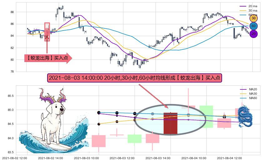 形态多维评估: ⚀ 2021-08-03 14:00:00小时显现 20小时-30小时-60小时均线 【蛟龙出海】买入点 看多信号,后市看涨,买入