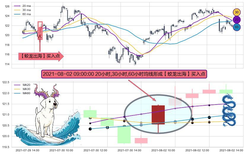 ⚀ 2021-08-02 09:00:00小时显现 20小时-30小时-60小时均线 【蛟龙出海】买入点 看多信号,后市看涨,买入