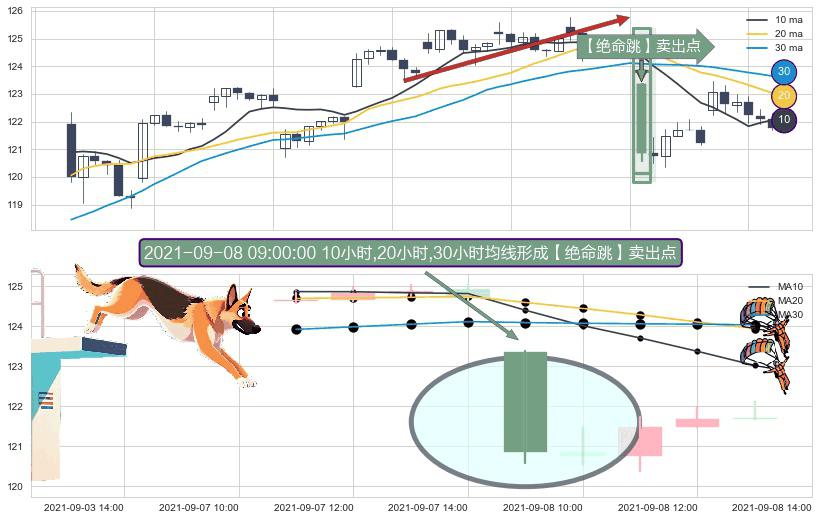 ⚀ 2021-09-08 09:00:00小时显现 10小时-20小时-30小时均线 【绝命跳】卖出点 看空信号,后市看跌,卖出