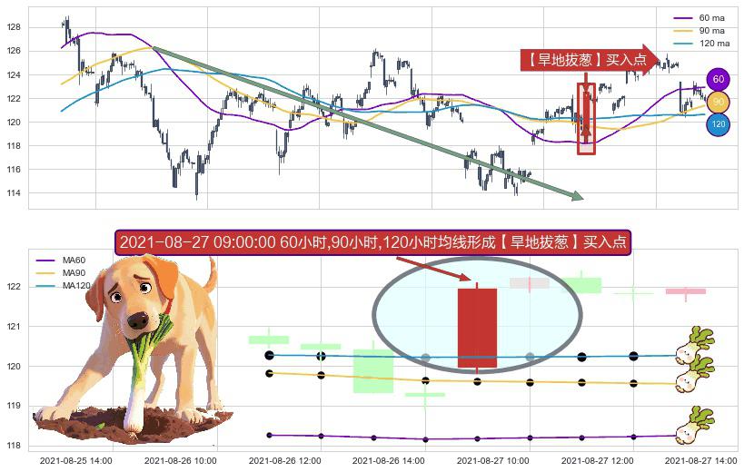 ⚀ 2021-08-27 09:00:00小时显现 60小时-90小时-120小时均线 【旱地拔葱】买入点 看多信号,后市看涨,买入