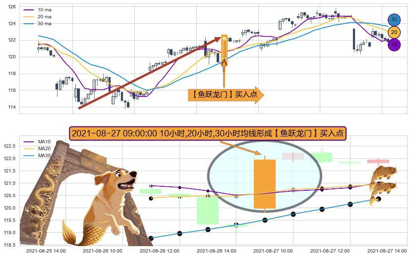 ⚀ 2021-08-27 09:00:00小时显现 10小时-20小时-30小时均线 【鱼跃龙门】买入点 看多信号,后市看涨,买入