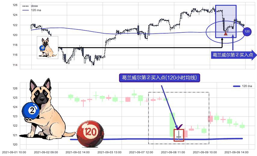 ⚀ 2021-09-08 10:00:00-小时显现 葛兰威尔均线 120小时均线 第②买入点 上升趋势的中继信号,后市看涨,买进信号