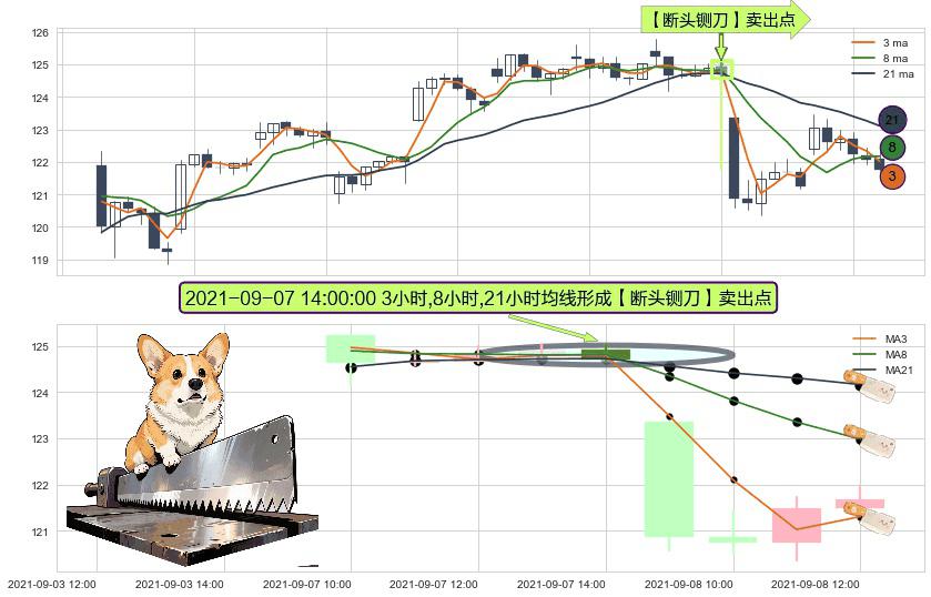 ⚀ 2021-09-07 14:00:00小时显现 3小时-8小时-21小时均线 【断头铡刀】卖出点 看空信号,后市看跌,卖出