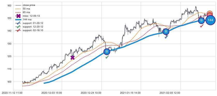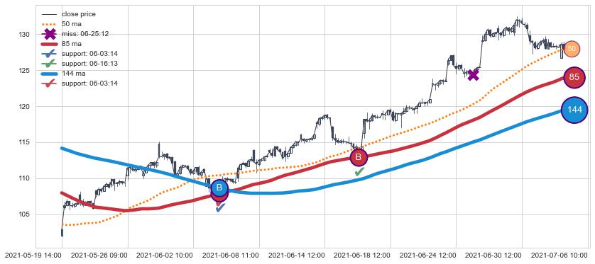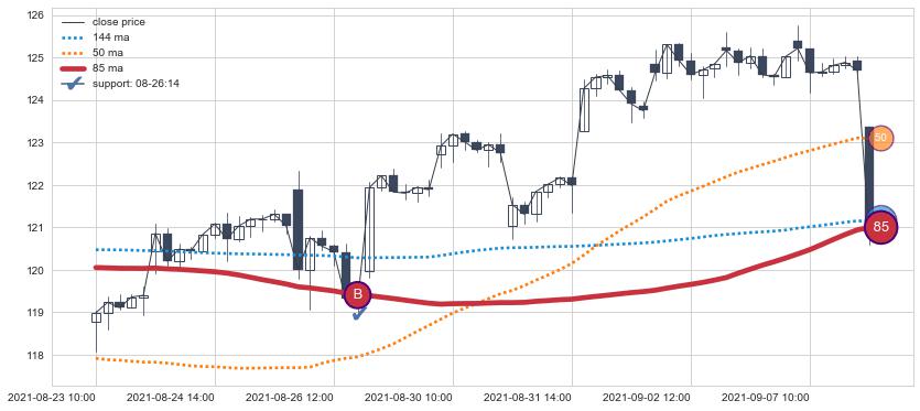 ⚄ 价格在均线获取支撑后再次向上反弹了【较短】距离, 第②买入点 支撑效果【仍需验证】