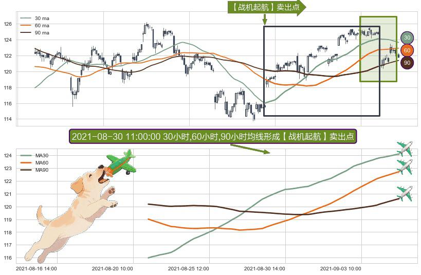 ⚀ 2021-08-20 14:00:00小时-2021-09-07 14:00:00小时显现 30小时-60小时-90小时均线 【战机起航】卖出点 看空信号,后市看跌,卖出