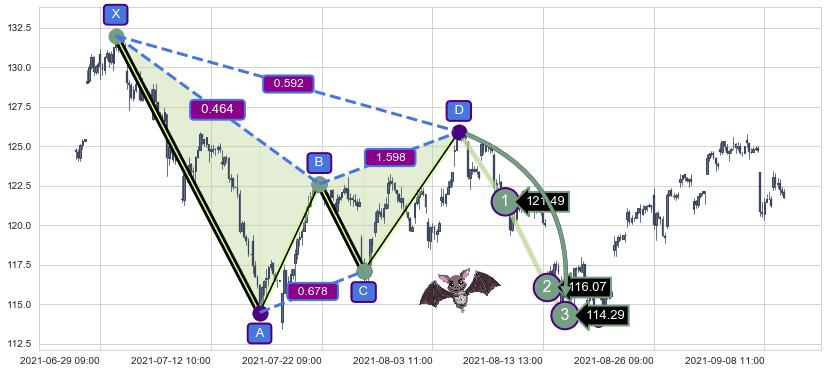➣ 已达成看跌【蝙蝠】形态全部的预期目标