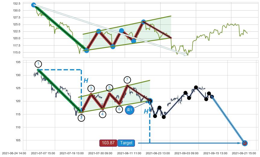 ➣ 最小中继整理跌幅→𝐇: 16.29 (𝐇旗杆的长度:旗杆起点→顶点)
