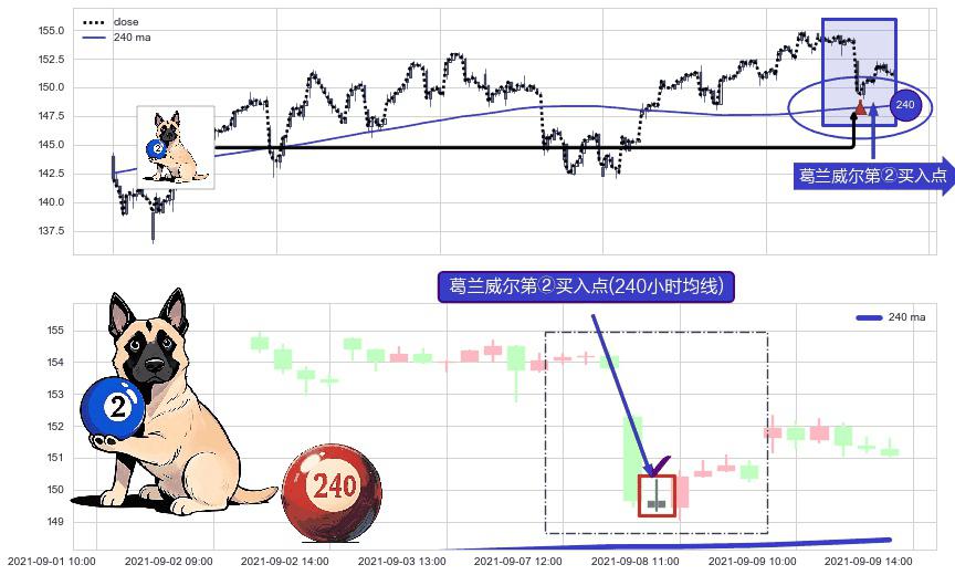 形态多维评估: ⚀ 2021-09-08 10:00:00-小时显现 葛兰威尔均线 240小时均线 第②买入点 上升趋势的中继信号,后市看涨,买进信号