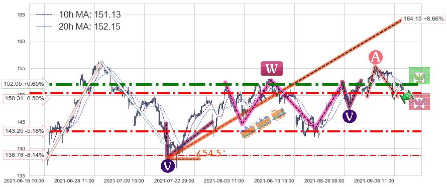♘ 阻力价格位152.05,可信任强度90.75%,距离最后交易2021-09-09 14:00形成的收盘价格151.07相差 +0.65%