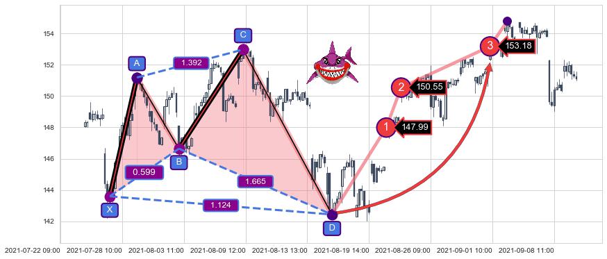 ➣ 已达成看涨【鲨鱼】形态全部的预期目标