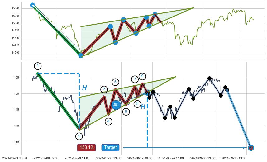 ➣ 08-24:09到达第❷价格目标位置150.55