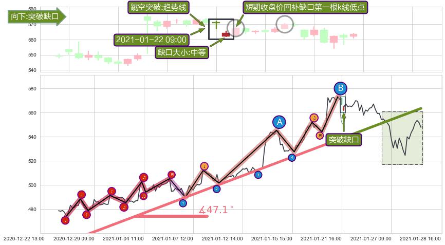 ➢ 2021-01-22 09:00形成:向下跳空【突破】缺口