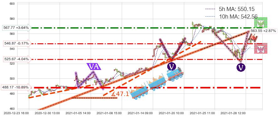 ♘ 支撑价格位546.87,可信任强度60.69%,距离最后交易2021-01-28 16:00形成的收盘价格547.81相差 -0.17%