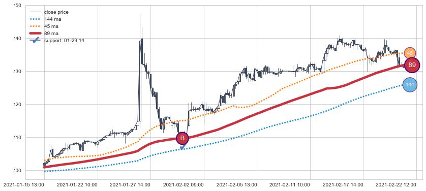 上涨趋势01-15 13:00-02-22 12:00,均线89确认关键支撑1处