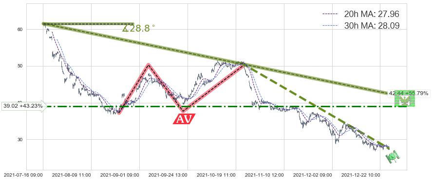 ♞ 20小时均线:27.96,30小时均线:28.09→ 快线<慢线