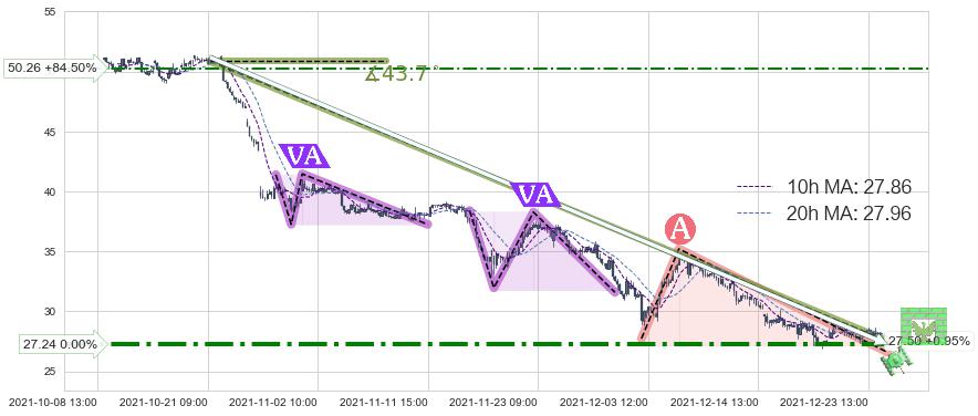 🦴 长线均值回复组合短线趋势跟踪[强阻力信号]2021-10-21 10:00-2021-12-27 15:00下跌趋势依然成立(下跌趋势跟踪依然存在),短线价格略微上行反弹(均值回复猜想),即将接近下跌趋势提供的未破位阻力价格:27.50。