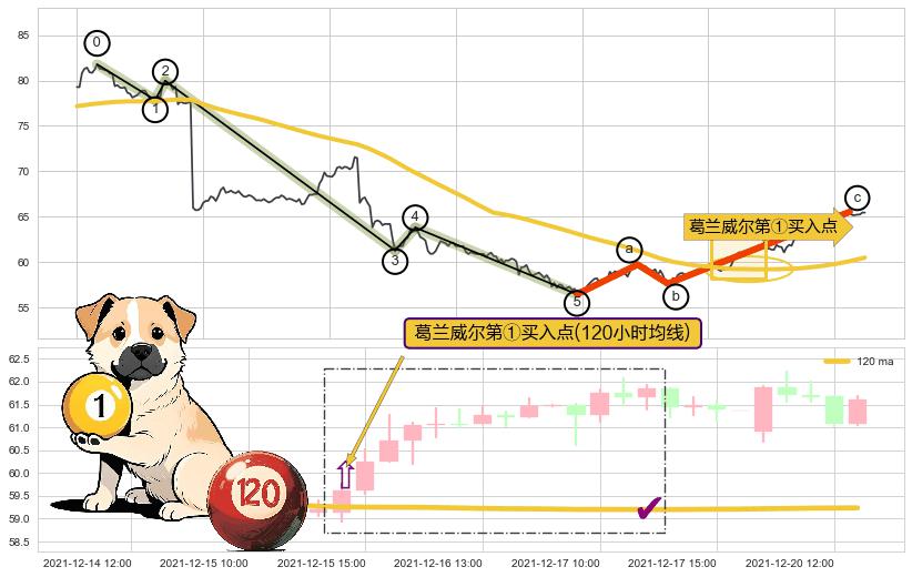 从2021-11-24 10:00至2021-12-17 12:00,共包含118个小时,阶段股价上涨1.77%,阶段股价变动位移路程比: 1 : 30