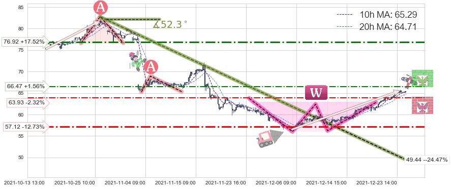 ♘ 阻力价格位66.47,可信任强度53.41%,距离最后交易2021-12-27 16:00形成的收盘价格65.45相差 +1.56%