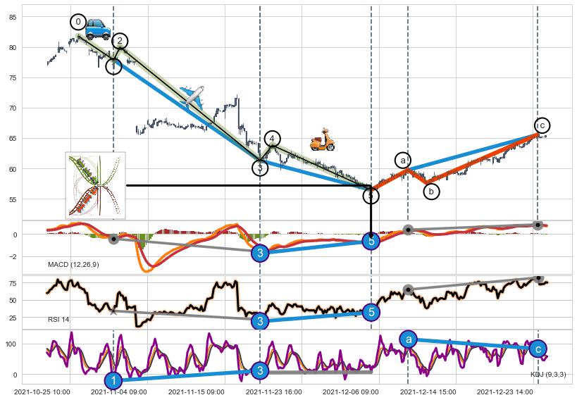 ➢ 1,3,5驱动浪MACD, RSI, KDJ走势都出现【常规背离】反转信号增强