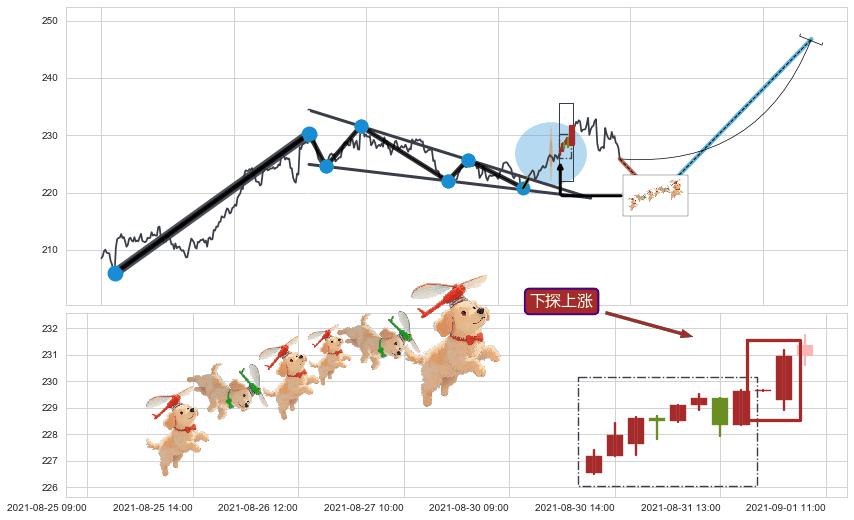 ➢ 收盘价(09-03:14: 232.81 )→再次回踩→第一根k线低点(09-02:14: 231.68 )