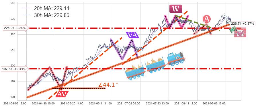♞ 20小时均线:229.14,30小时均线:229.85→ 快线<慢线