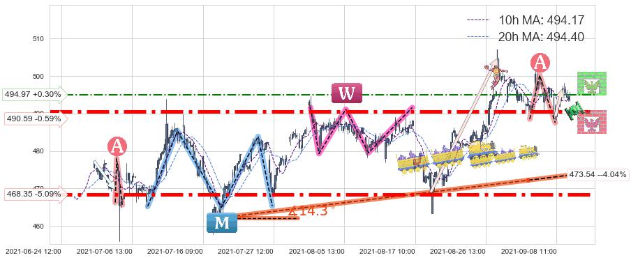 ♘ 阻力价格位494.97,可信任强度53.27%,距离最后交易2021-09-09 14:00形成的收盘价格493.49相差 +0.30%