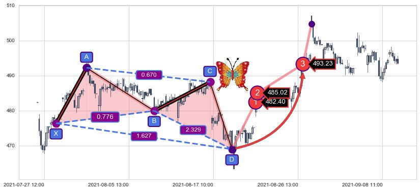 ➣ 已达成看涨【蝴蝶】形态全部的预期目标
