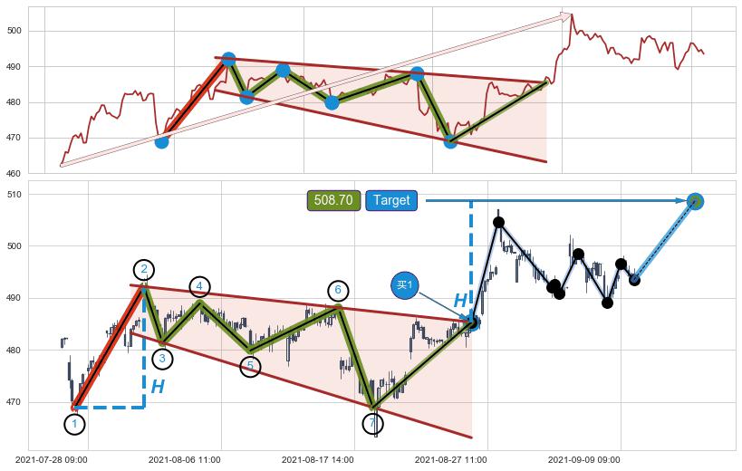 ➣ 最小中继整理涨幅→𝐇: 23.33 (𝐇旗杆的长度:旗杆起点→顶点)